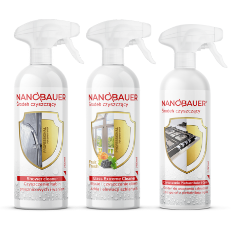 NANOBAUER Shower Cleaner 750ml Glass Extreme Cleaner 750ml Oven&Grill Cleaner 500ml
