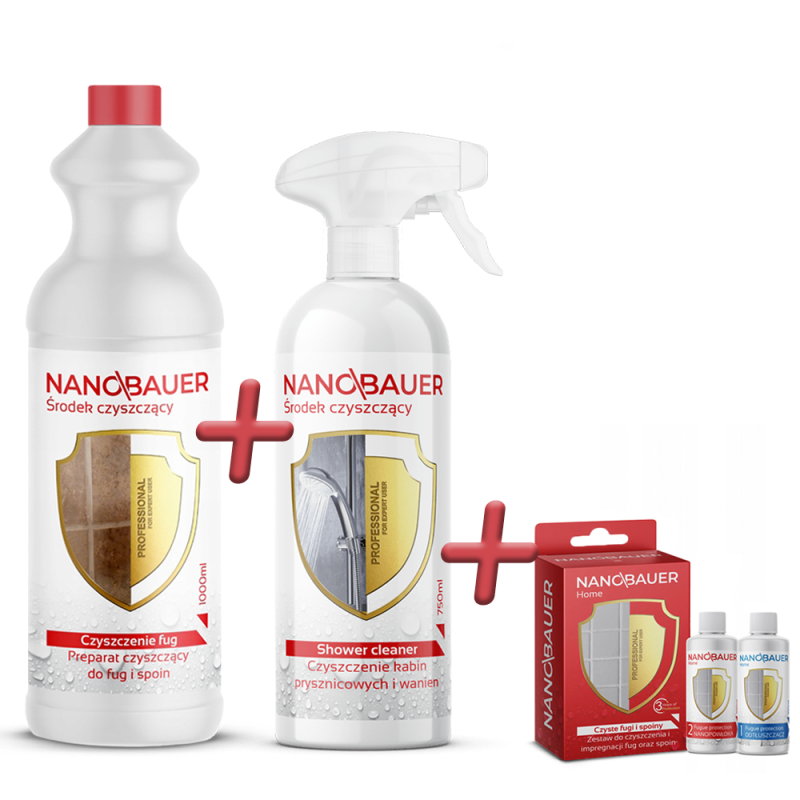 • NANOBAUER Shower Cleaner 750ml + Shower Protect 60ml/60ml +Czyszczenie fug 1L